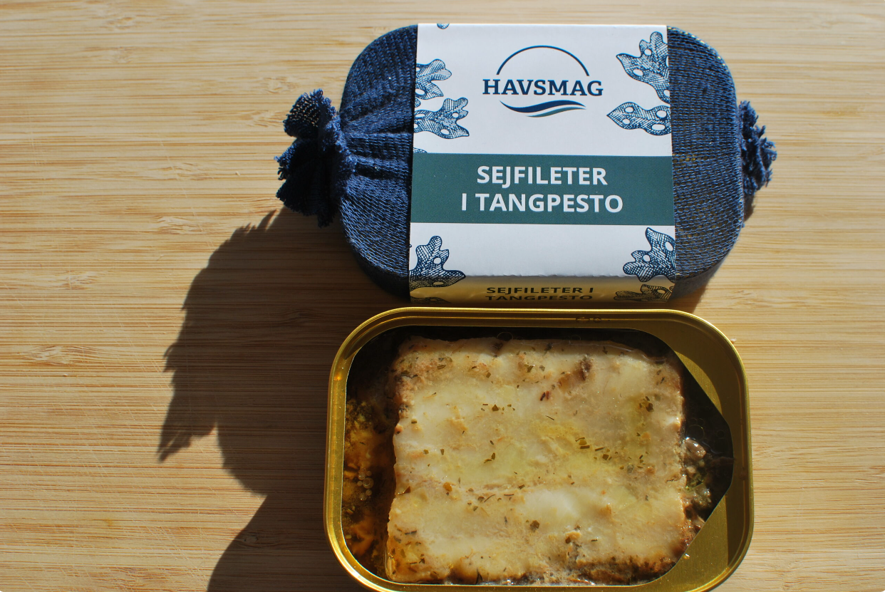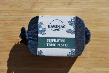 Smagfulde sejfileter (Alaska Pollock) i en rig tangpesto med blæretang, kapers og urter. Et delikat, bæredygtigt produkt med dansk vildhøstet tang.